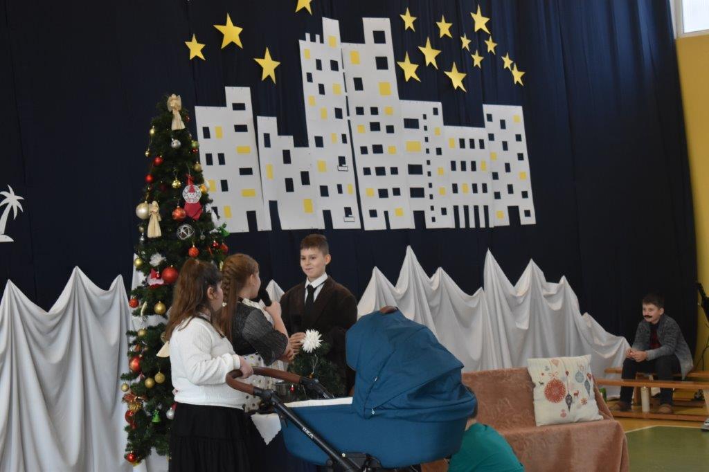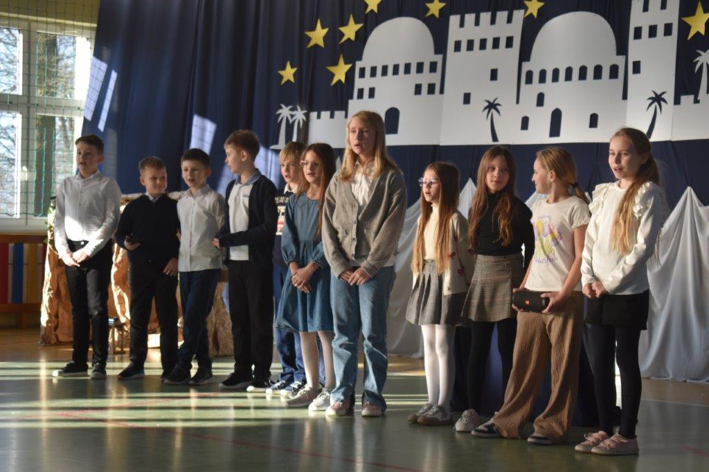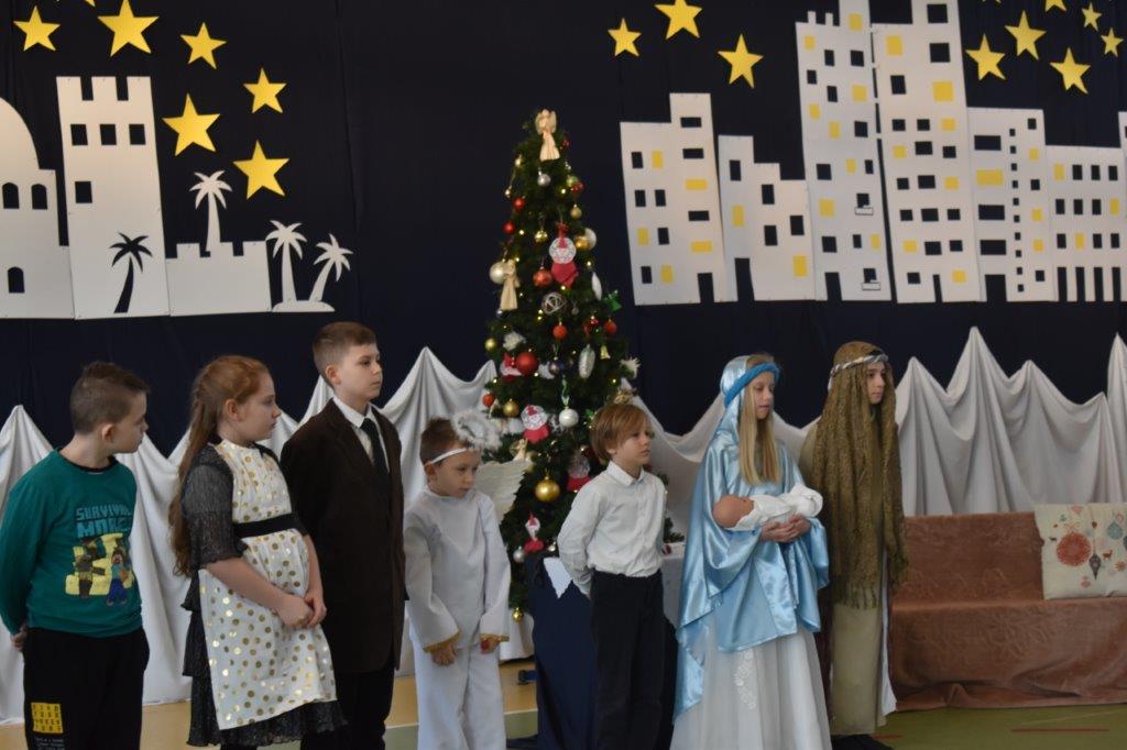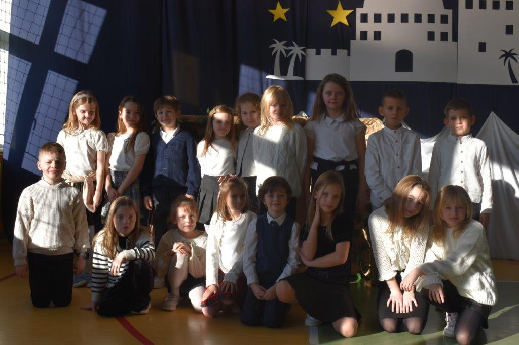 Młodzi aktorzy to uczniowie klasy trzeciej. Dekorację wykonały p. Ewa