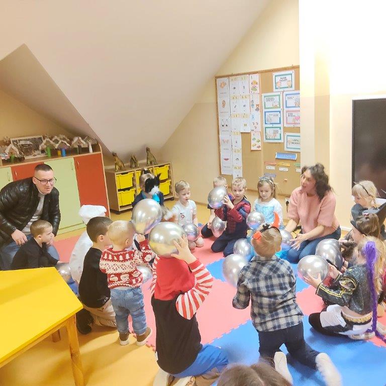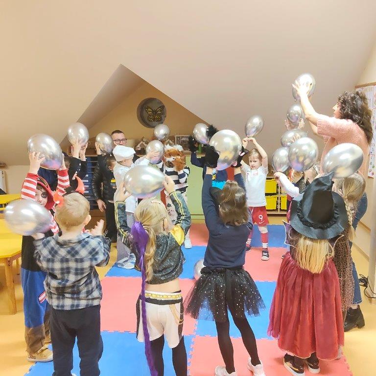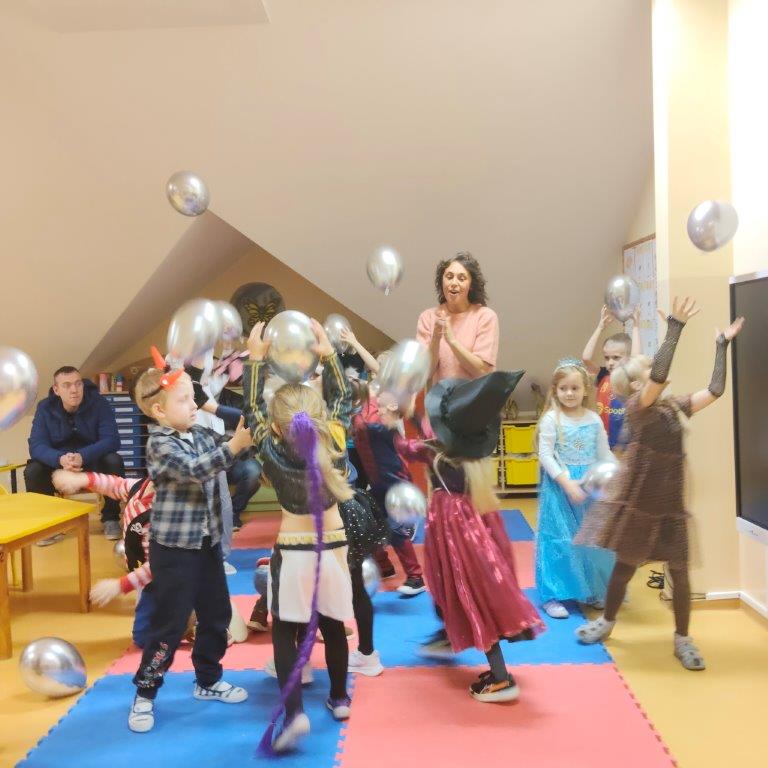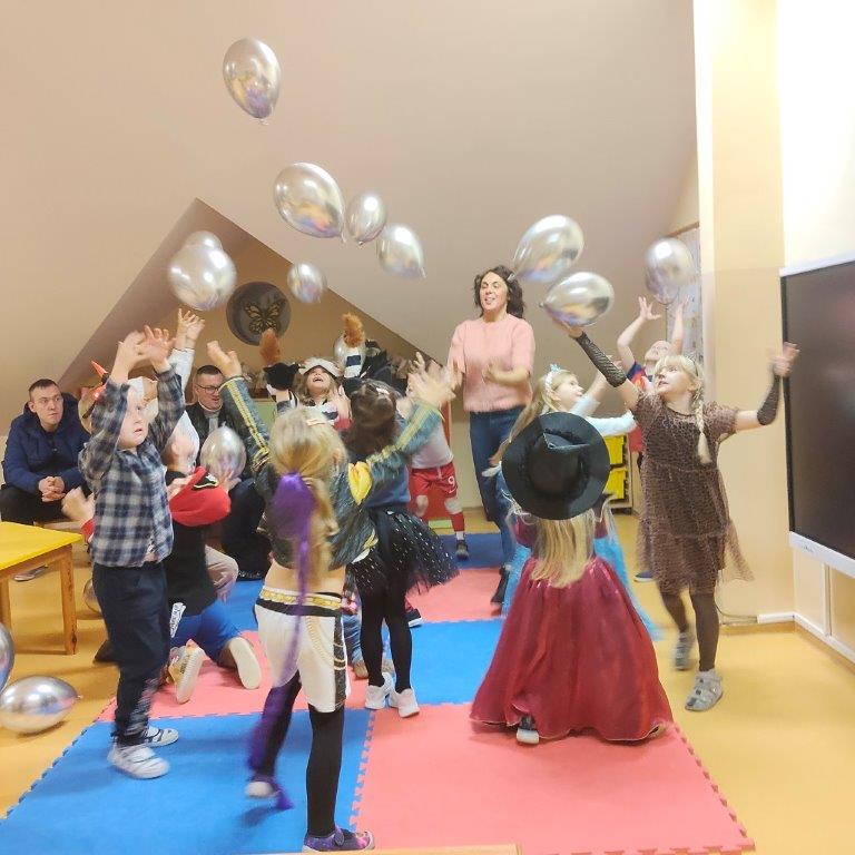 aktywności, które realizują na co dzień w ramach zajęć, m.in. tańce z balonami,
